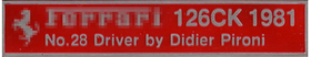 1/20 フェラーリ 126CK データープレート (ディディエ・ピローニ仕様)